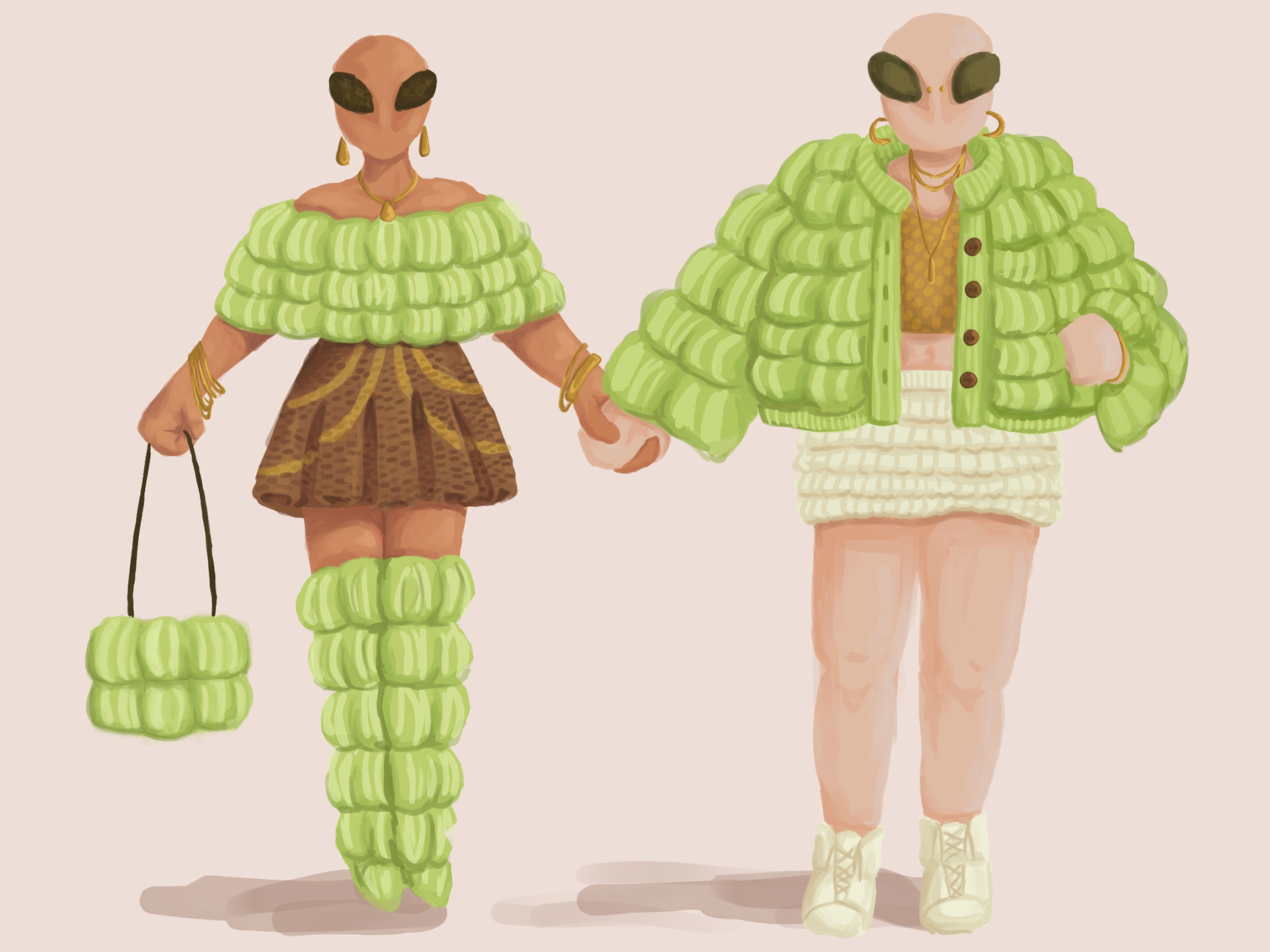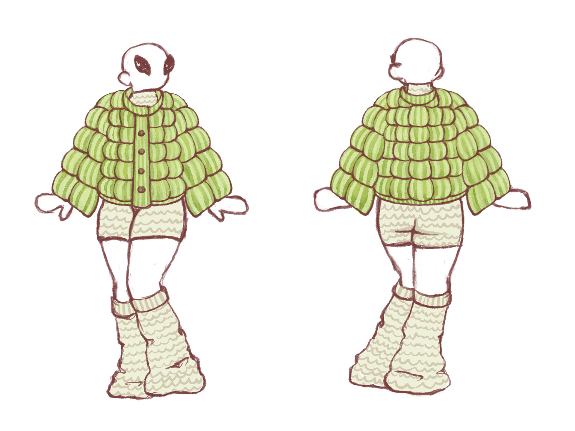 Double-bed knitted fabrics designed to reimagine the human form through textures and silhouettes drawn from caterpillars and moths. By redefining the shapes the human body takes, one can then redefine the rules they are expected to live by.